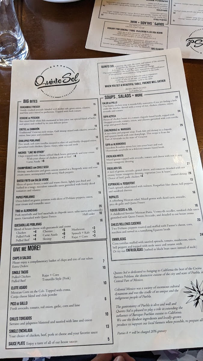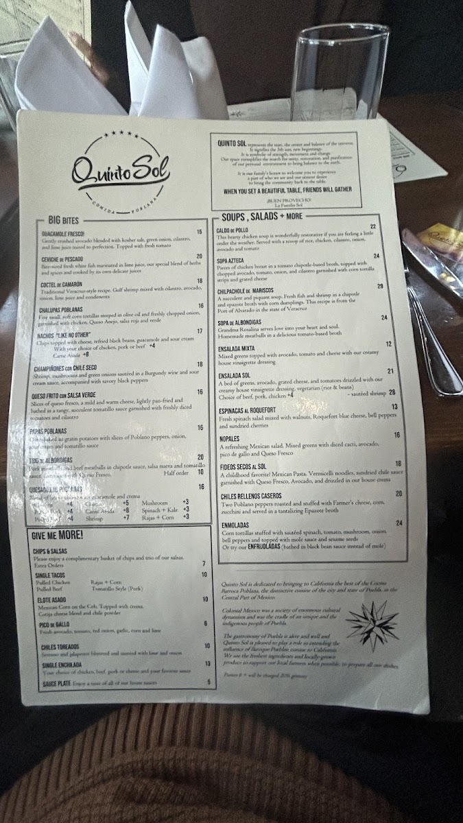 Consistently praised for its ambiance and service, Quinto Sol is not just a restaurant; it’s a gathering place steeped in culture and culinary passion. Whether you're coming for a cheerful dinner with friends or a special date night, Quinto Sol delivers an experience that tantalizes the taste buds while making you feel welcomed and cared for. So indulge your cravings and visit Quinto Sol, where every bite is a journey through Mexico's rich culinary landscape.