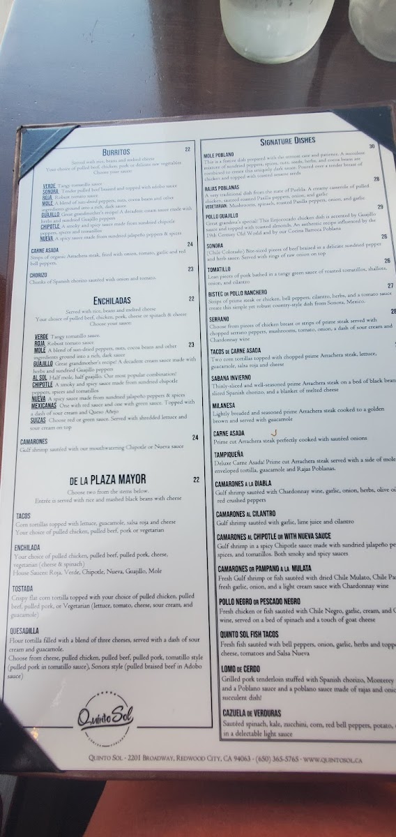 Located at 2201 Broadway in Redwood City, CA, Quinto Sol is a vibrant Mexican restaurant that invites you to indulge in the authentic flavors and festive spirit of Mexican cuisine. With its eye-catching decor that marries traditional Mexican artistry with modern elegance, the restaurant provides a welcoming atmosphere that is perfect for everything from intimate dinners to lively gatherings with friends and family.